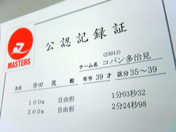 今日、中日スポーツマスターズスイミング2009に出場しました。出場種目は、