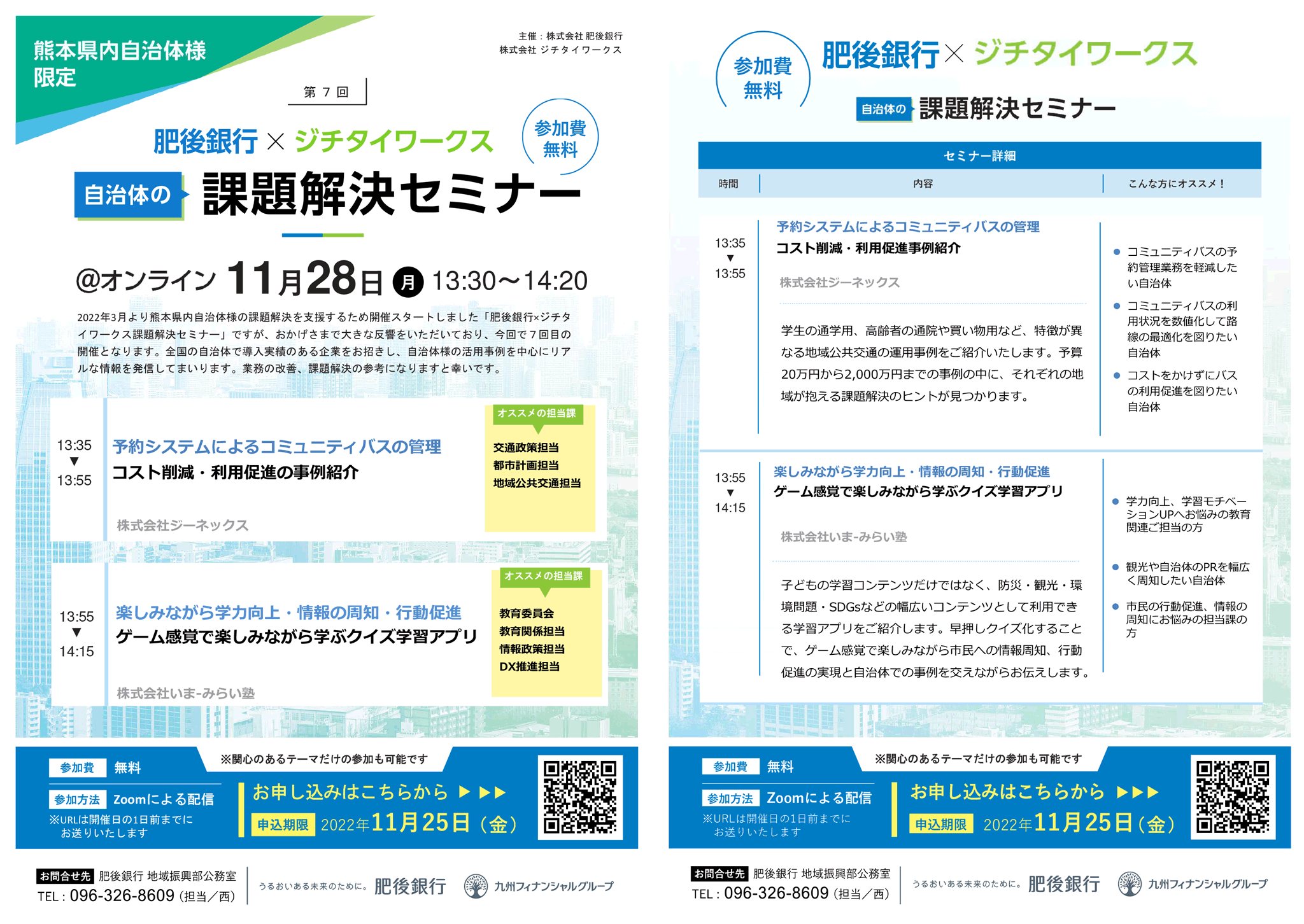 【お知らせ】肥後銀行主催の「自治体の課題解決セミナー」に当社代表の柴田が登壇します!